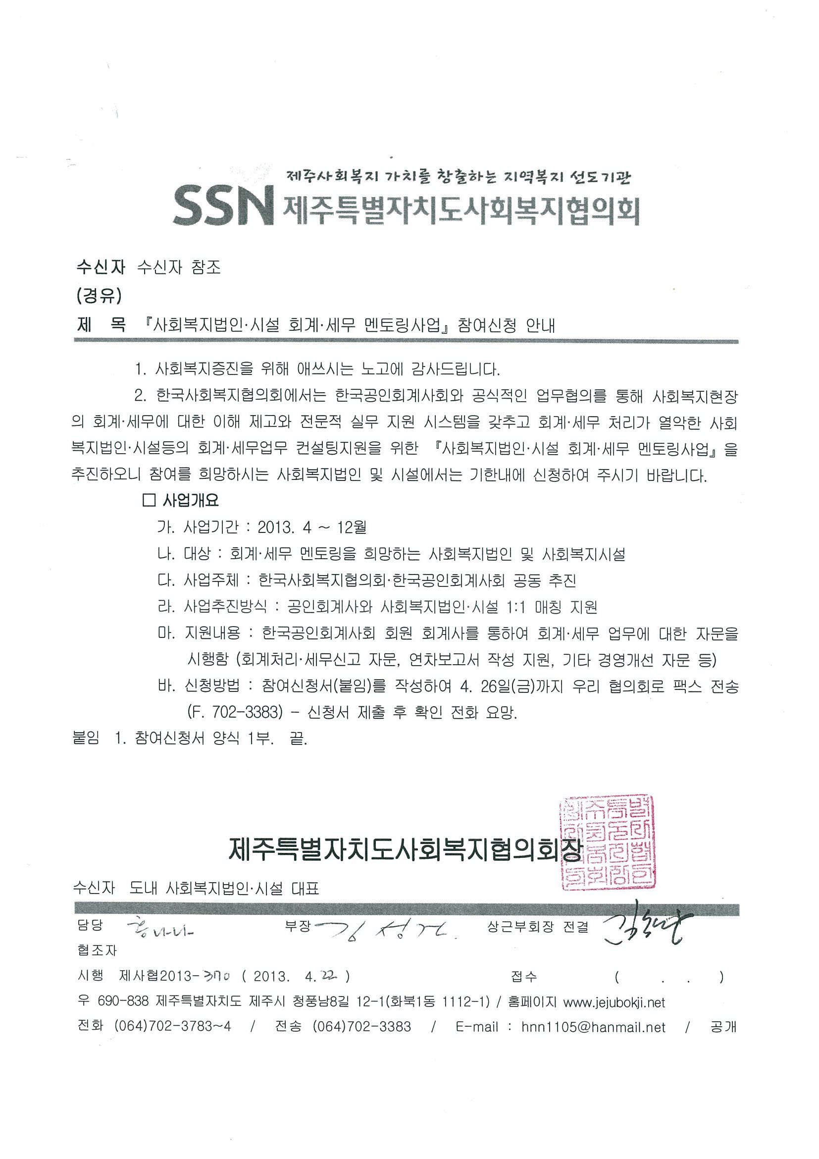 『사회복지법인·시설 회계·세무 멘토링사업』참여신청 안내