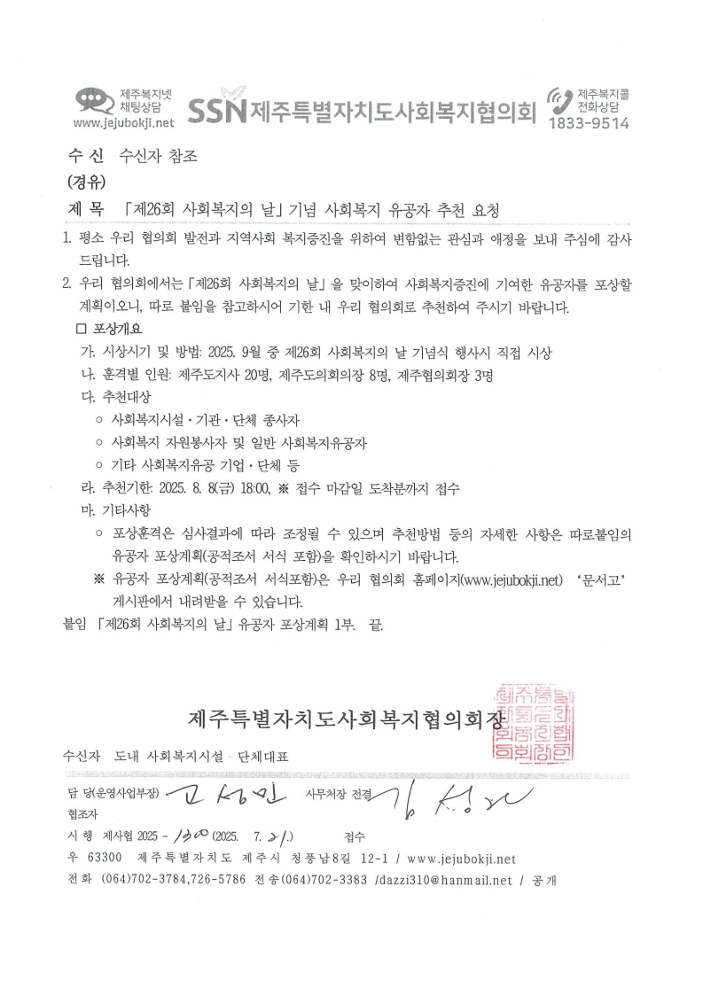 제26회 사회복지의 날 기념 사회복지유공자 추천 요청