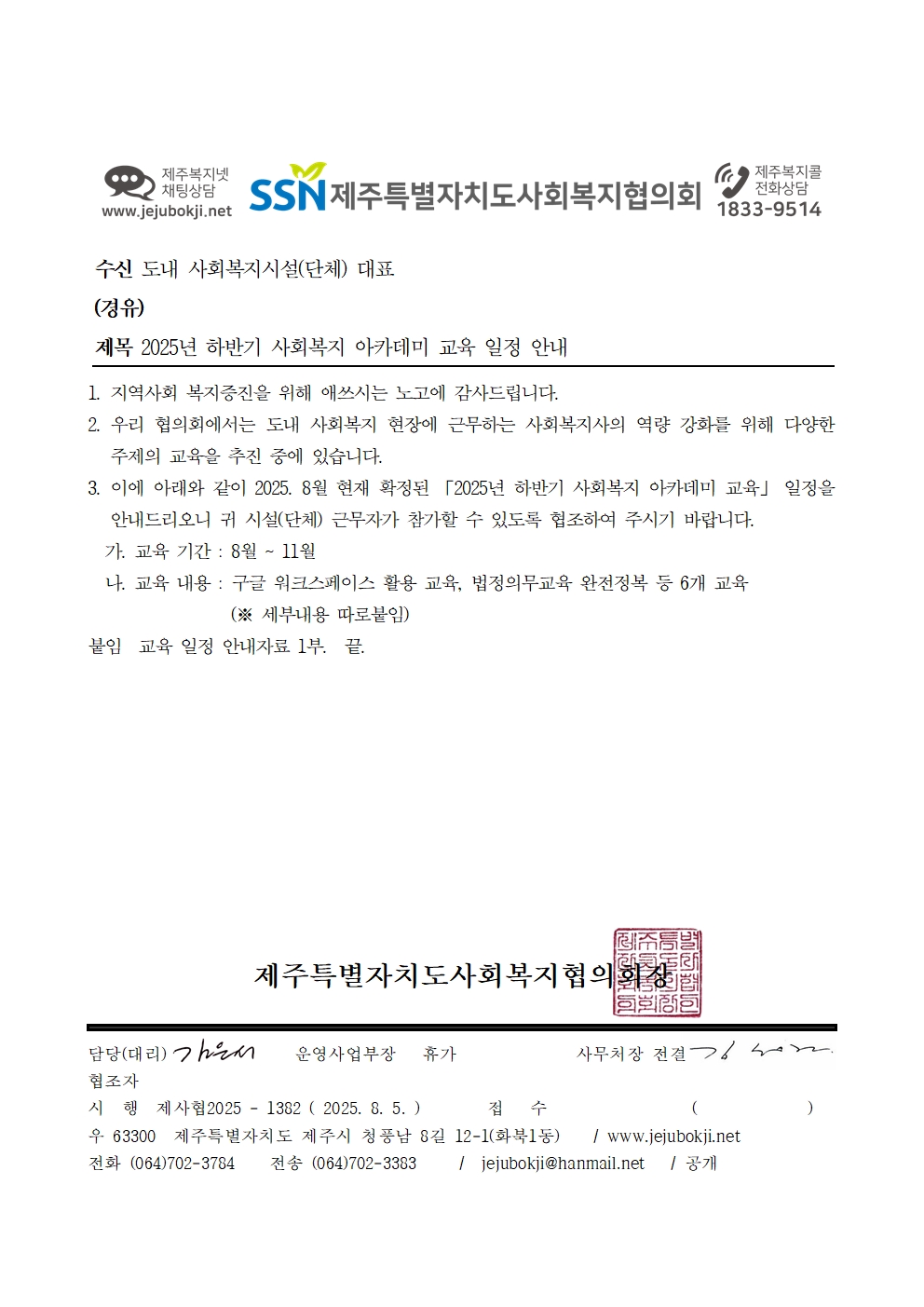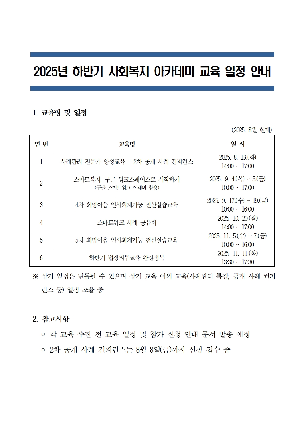 2025년 하반기 사회복지 아카데미 교육 일정 안내