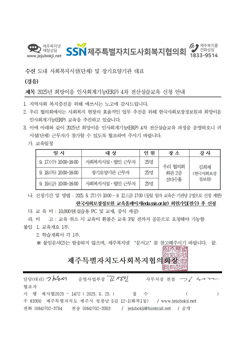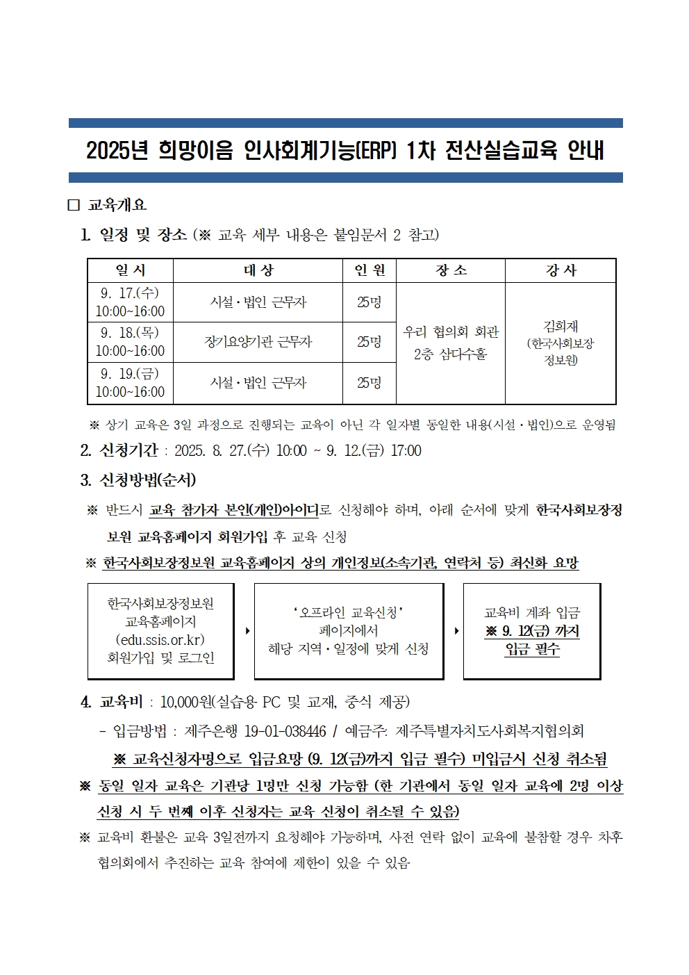 2025년 희망이음 인사회계기능(ERP) 4차 전산실습교육 신청 안내