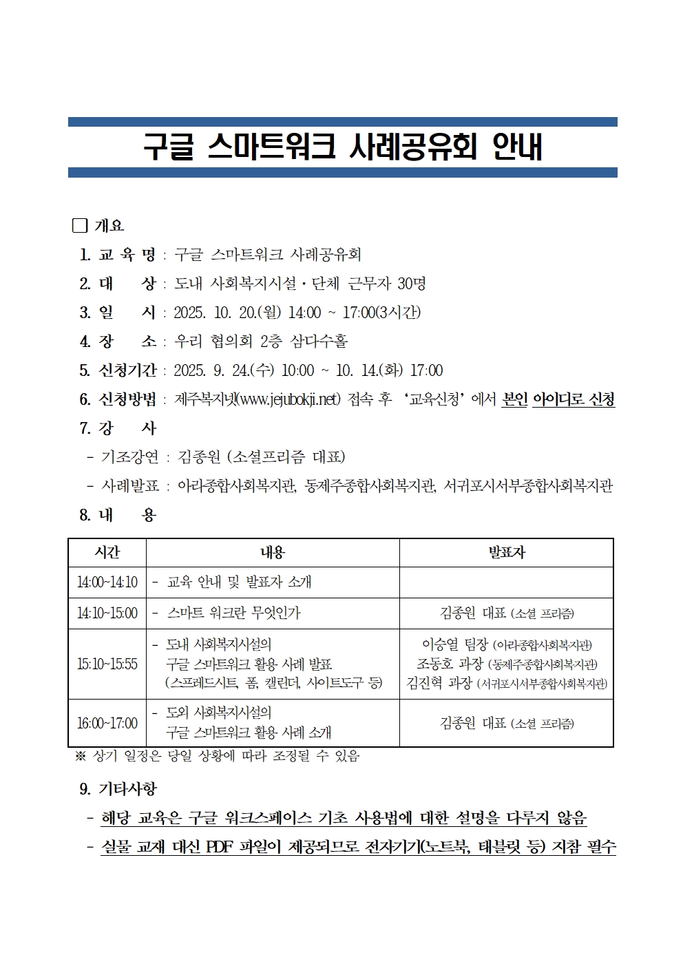 '구글 스마트워크 사례공유회' 참가 신청 안내