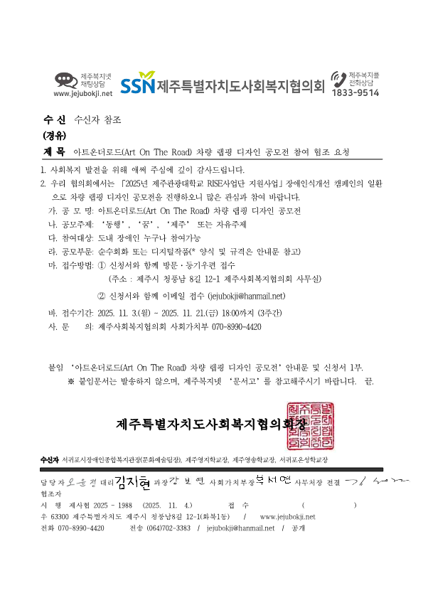 아트온더로드 차량 랩핑 디자인 공모전 참여 협조 요청