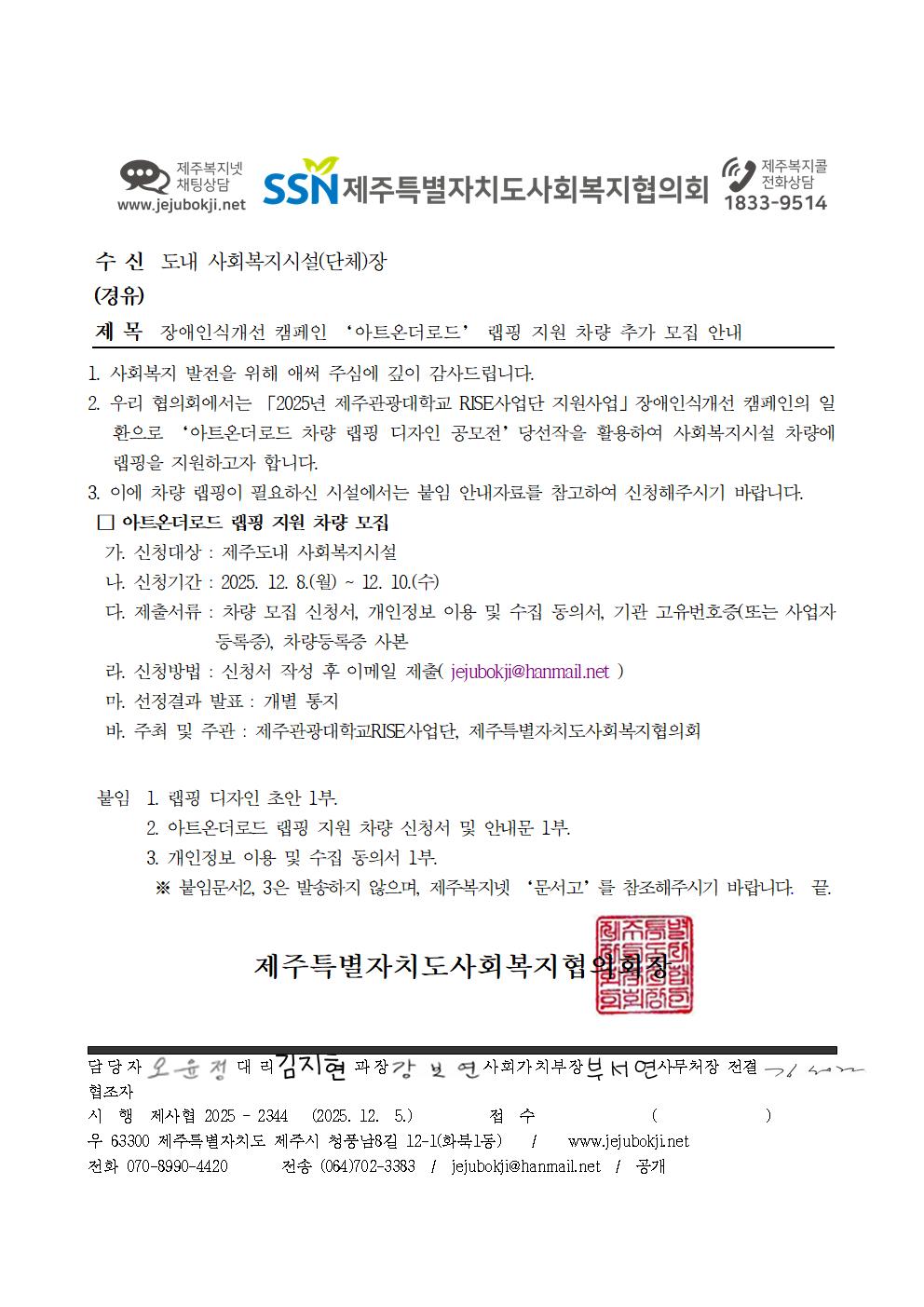 장애인식개선 캠페인 아트온더로드 랩핑 지원 차량 추가 모집 안내