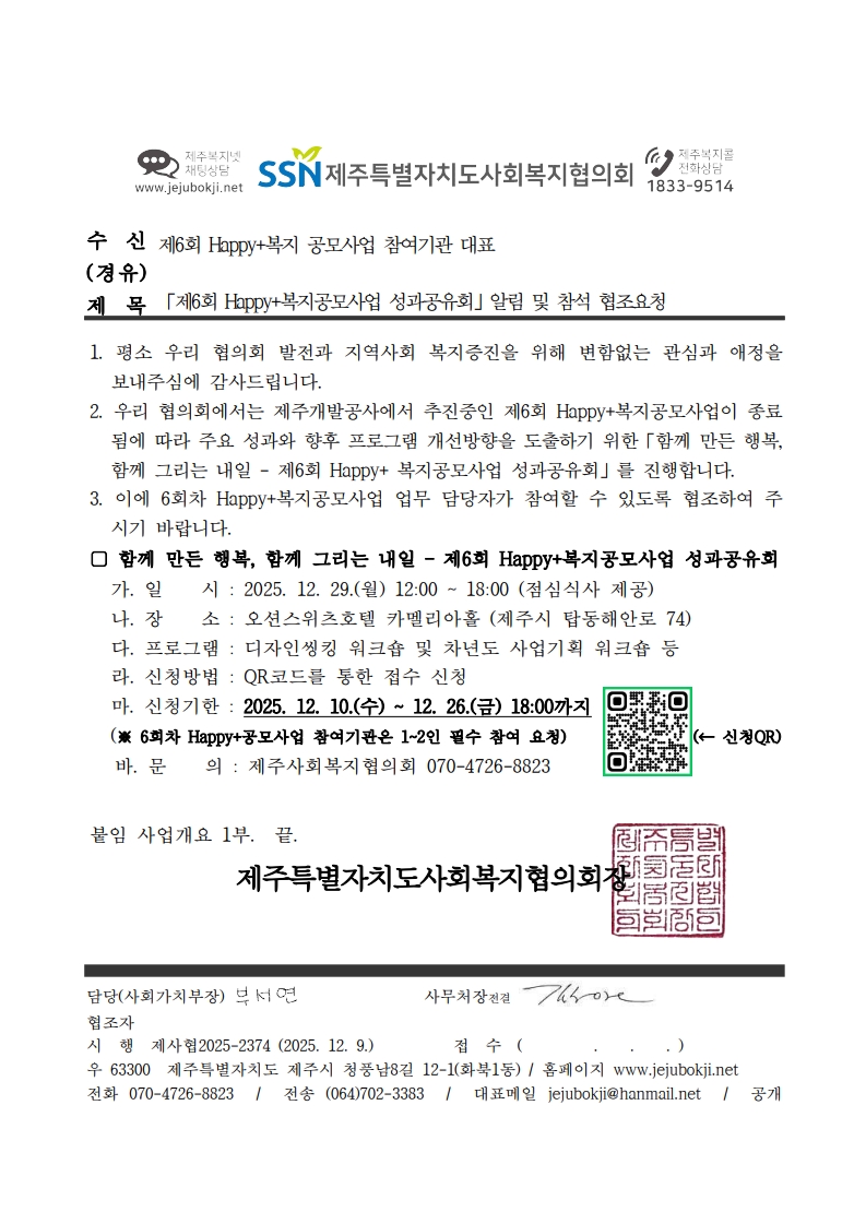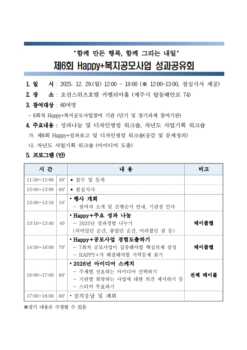 「제6회 Happy+복지공모사업 성과공유회」알림 및 참석 협조요청