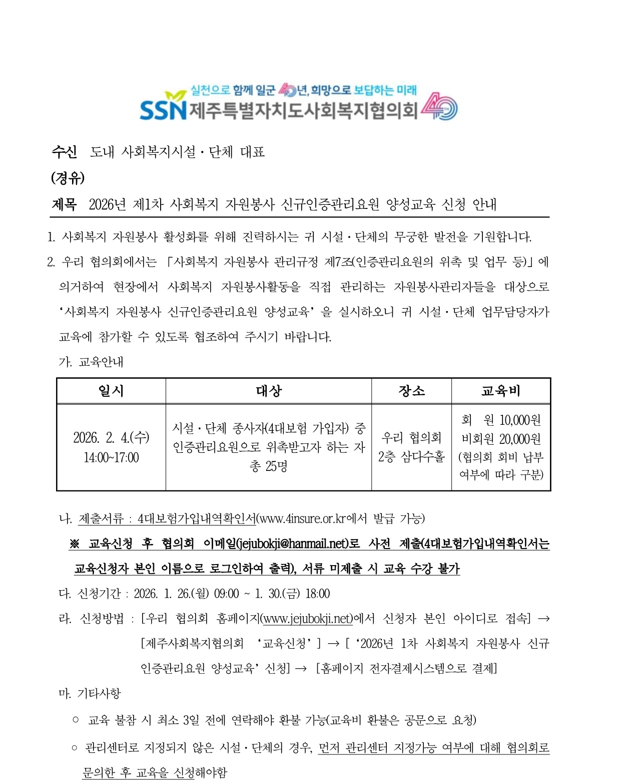 2026년 제1차 신규 인증관리요원 양성교육 신청 안내