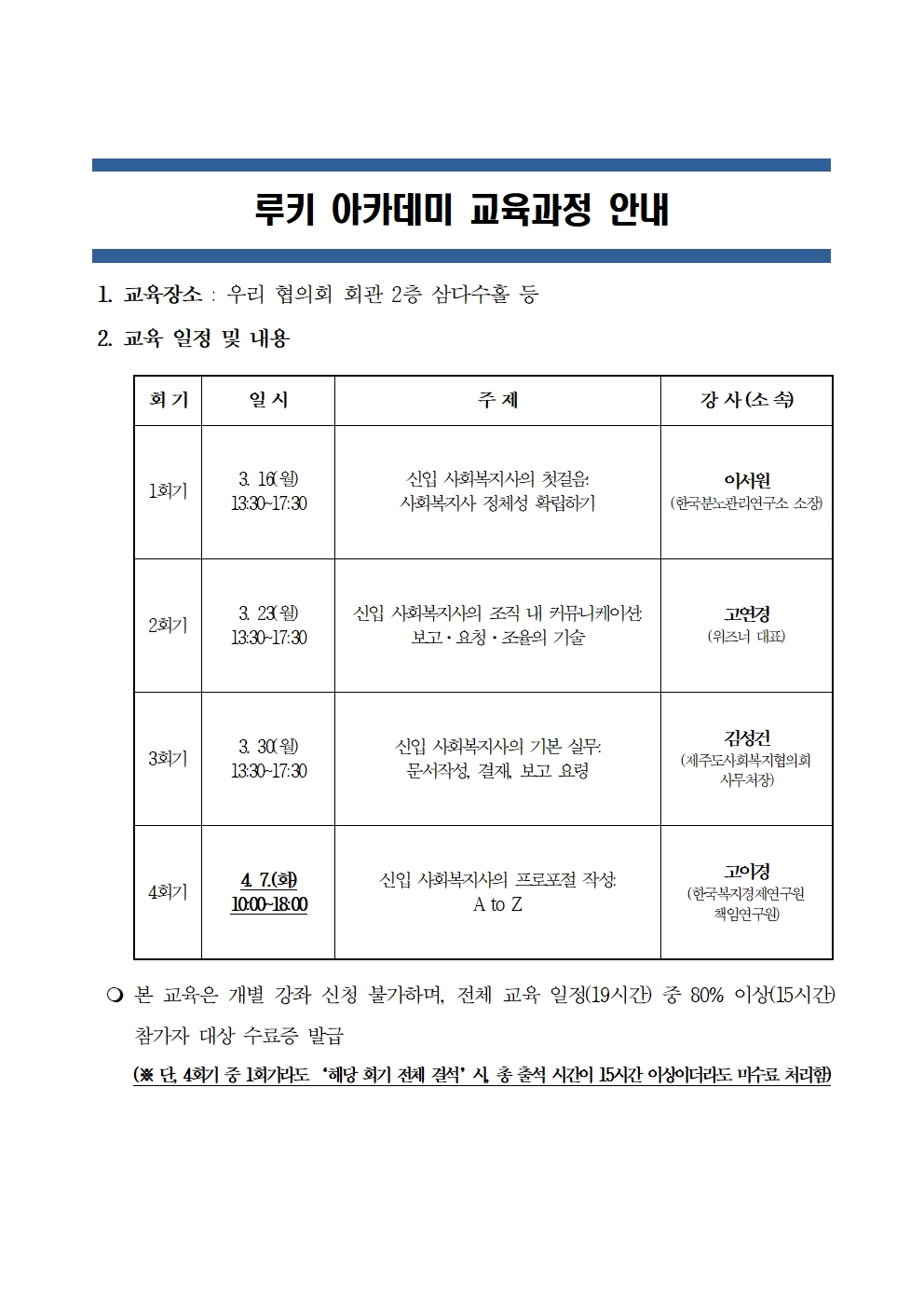 사회복지현장 직급별 전문 교육과정 '루키 아카데미' 참가 신청 안내