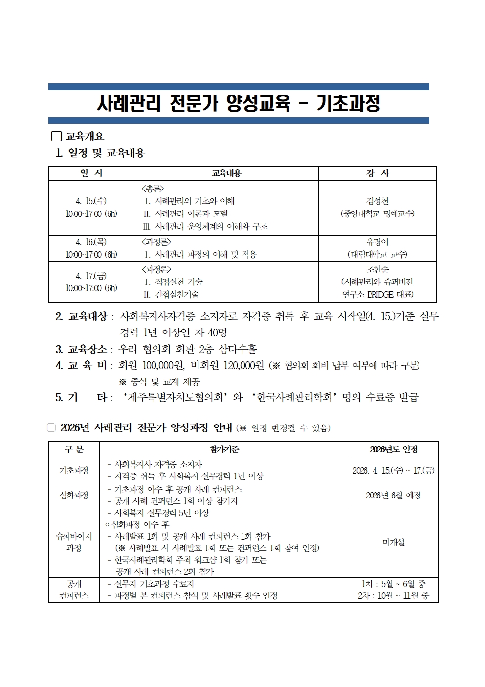 '사례관리 전문가 양성교육 - 기초과정' 신청 안내