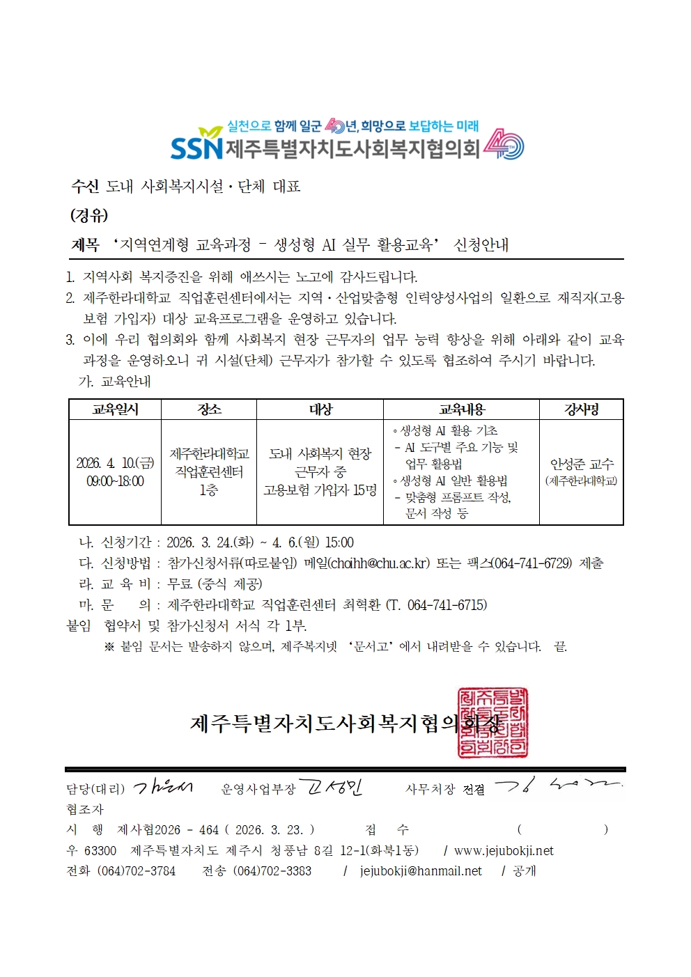 '지역연계형 교육과정 - 생성형 AI 실무 활용교육' 신청안내