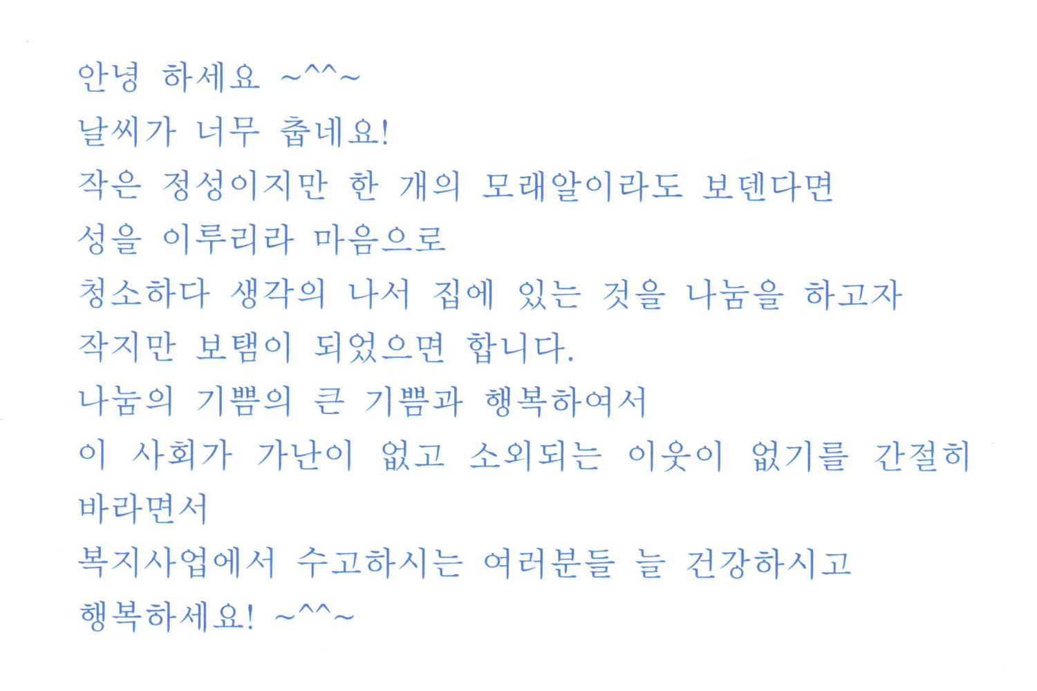 익명의 기부자께서 전하는 편지입니다.