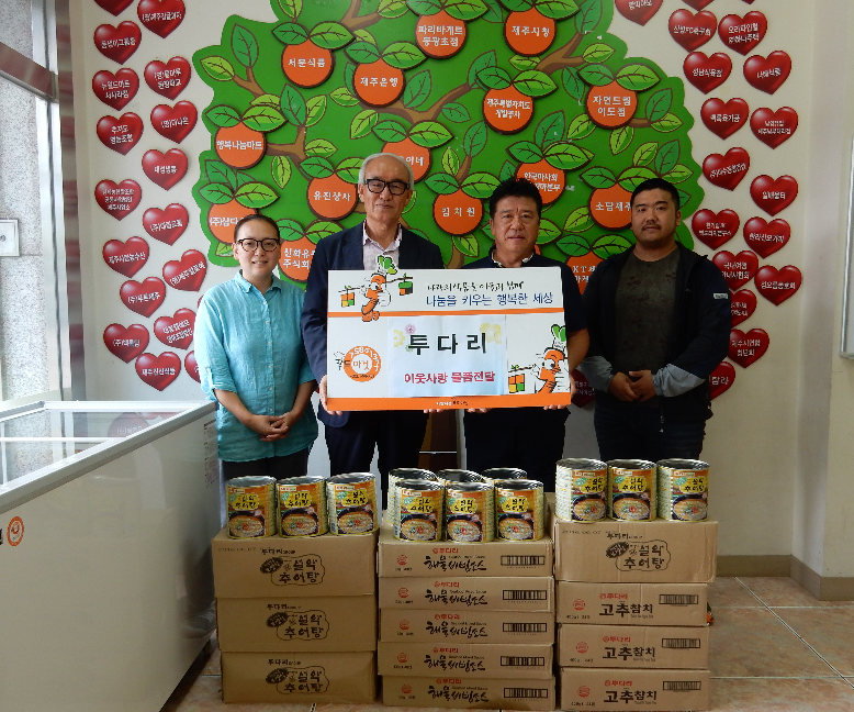 투다리 제주지사 황기호 지사장은 30사랑나눔푸드마켓을 찾아 어려운 이웃들에게 전달해달라며 100만원 상당의 통조림 348개를 기탁했다.