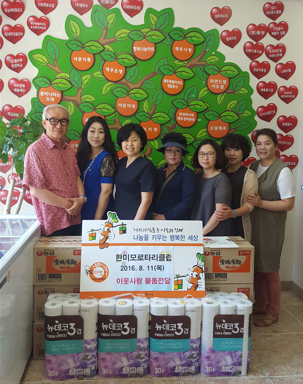 제주한미모로타리클럽 회장 오영희 외 회원일동은 지난 11일 제주특별자치도사회복지협의회(회장 고치환)에서 운영하는 사랑나눔푸드마켓을 찾아 어려운 이웃들에게 전달해달라며 라면, 화장지 등 50만원 상당의 물품을 기탁했다.