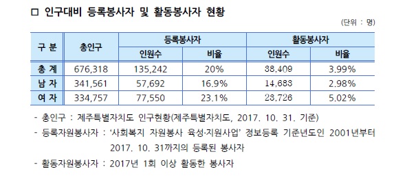제주특별자치도 자원봉사현황(2017. 10. 31. 기준)