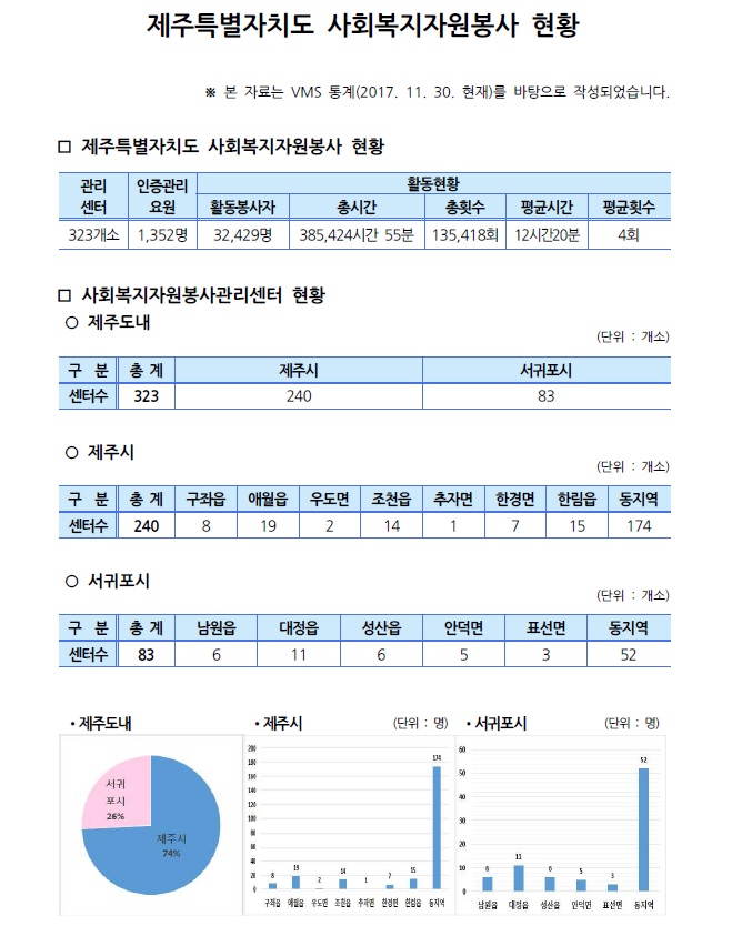 제주특별자치도 자원봉사현황(2017. 11. 30. 기준)