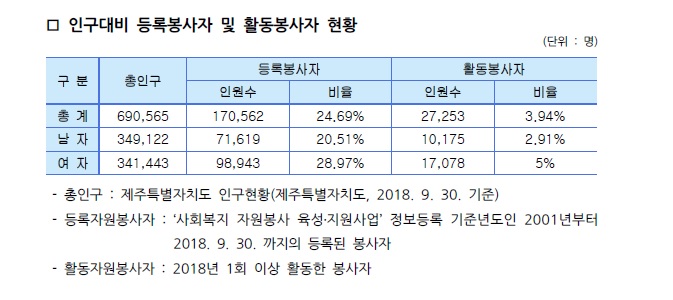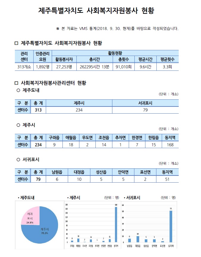 제주특별자치도 자원봉사현황(2018. 9. 31 기준)