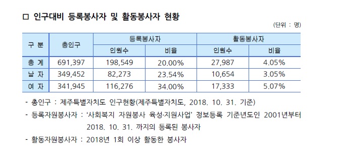 제주특별자치도 자원봉사현황(2018. 10. 31 기준)