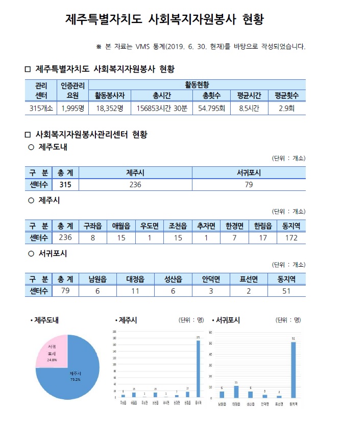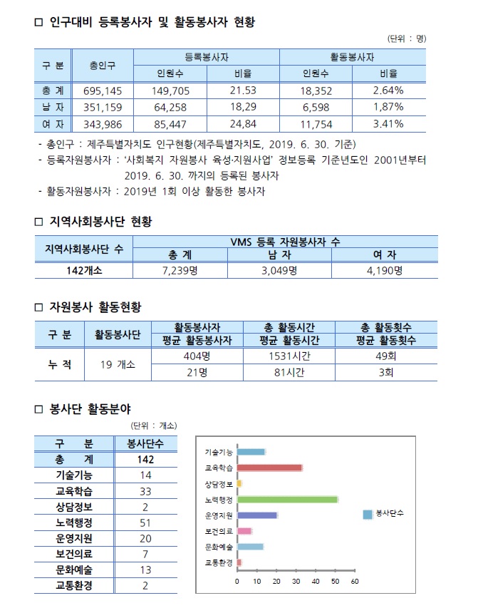제주특별자치도 자원봉사현황(2019. 6. 30기준)