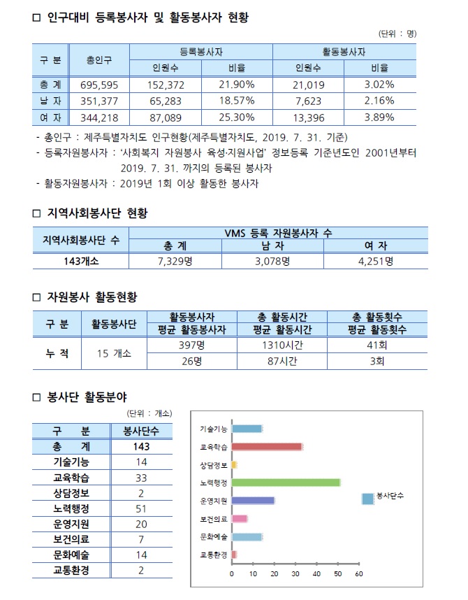 제주특별자치도 자원봉사현황(2019. 7. 31기준)
