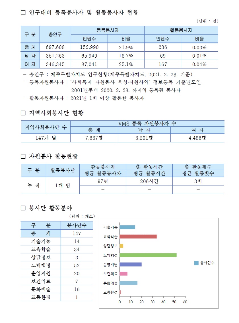 제주특별자치도 자원봉사현황(2021. 2. 28 기준)