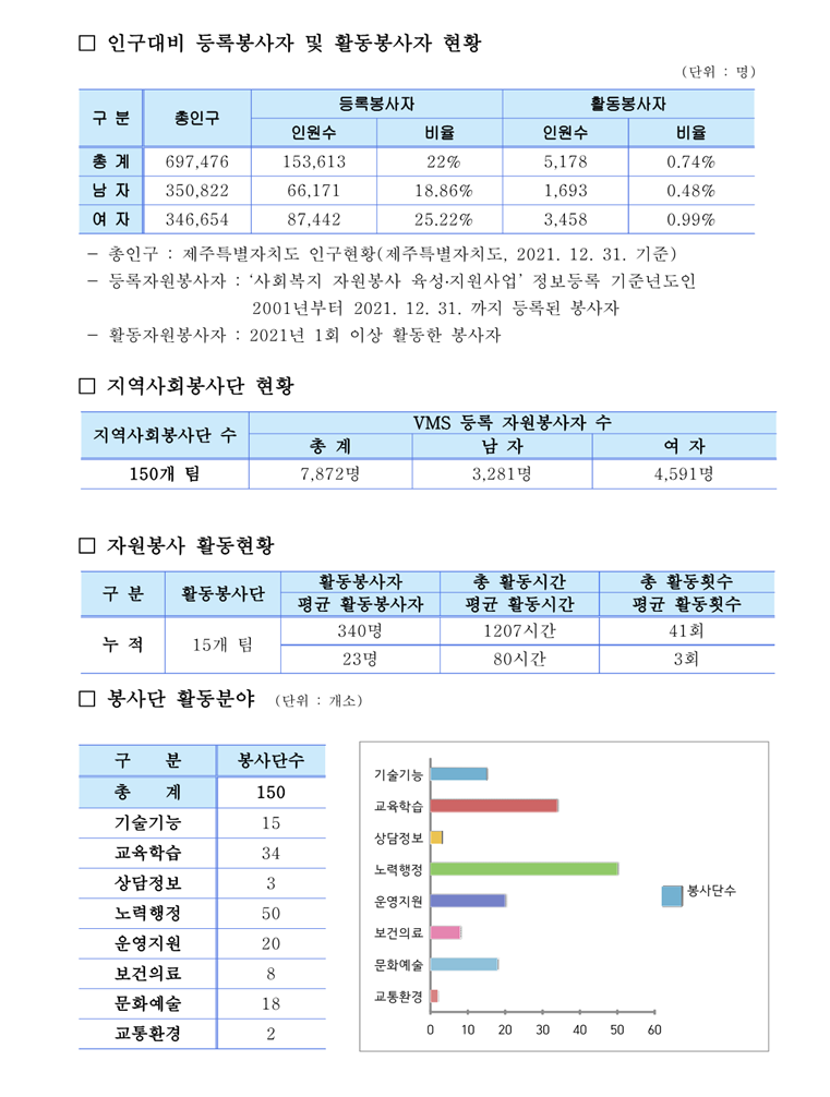 제주특별자치도 자원봉사현황 (2021. 12. 31 기준)