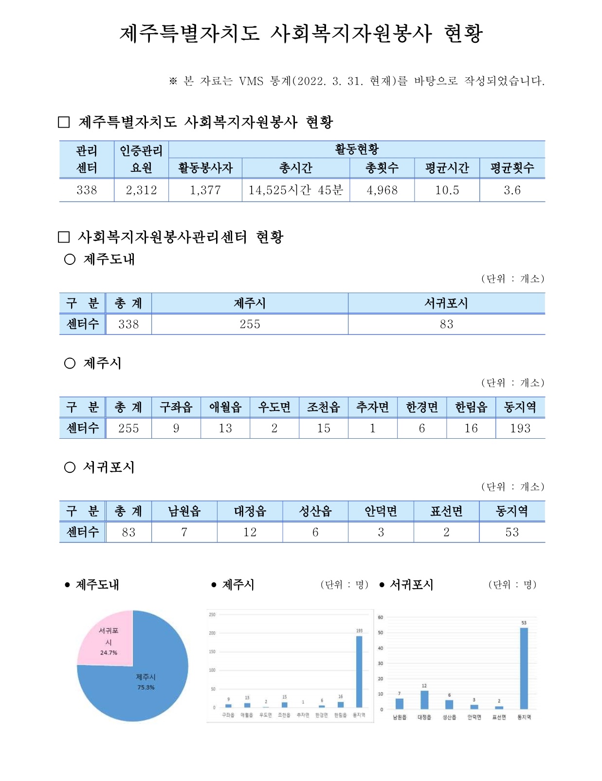 제주특별자치도 자원봉사현황 (2022. 3. 31 기준)