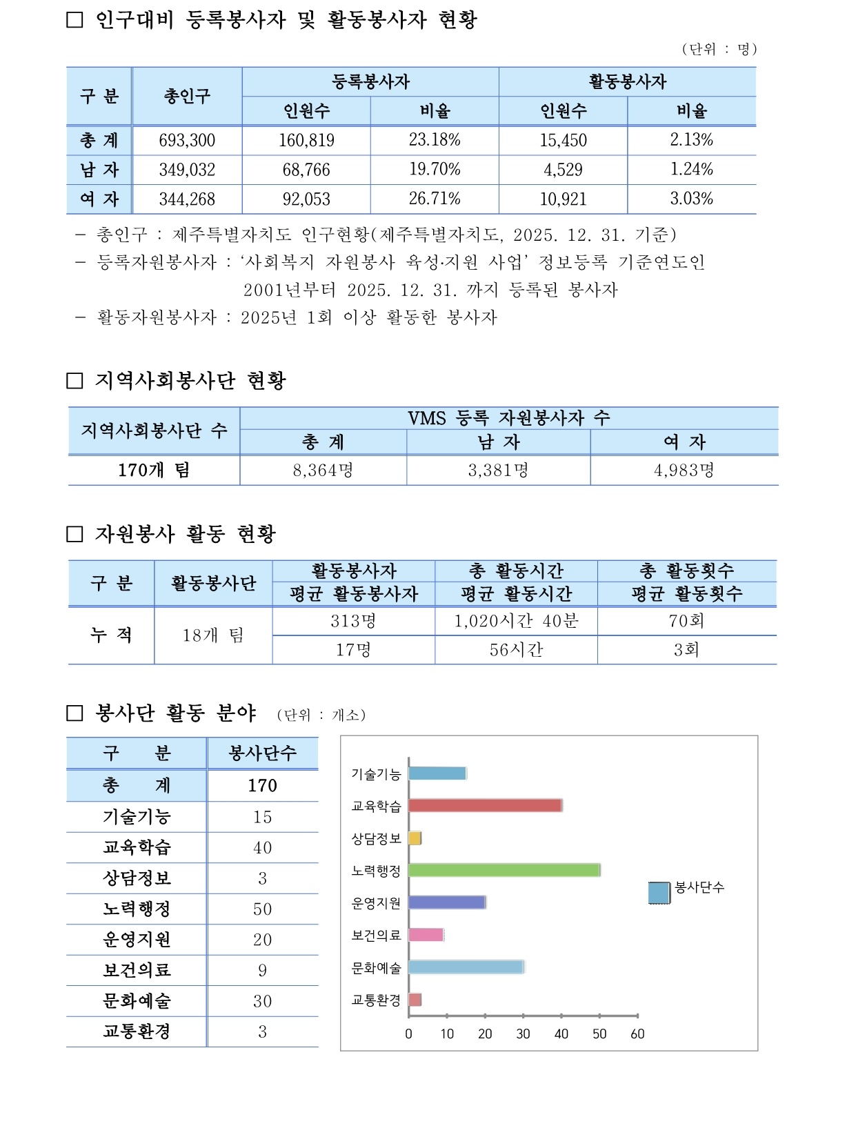 제주특별자치도 자원봉사 현황 (2025. 12. 31. 기준)