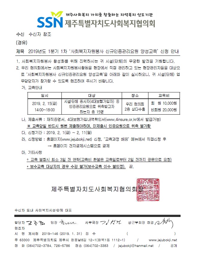 2019년 1분기 1차 사회복지자원봉사 신규인증관리요원 양성교육