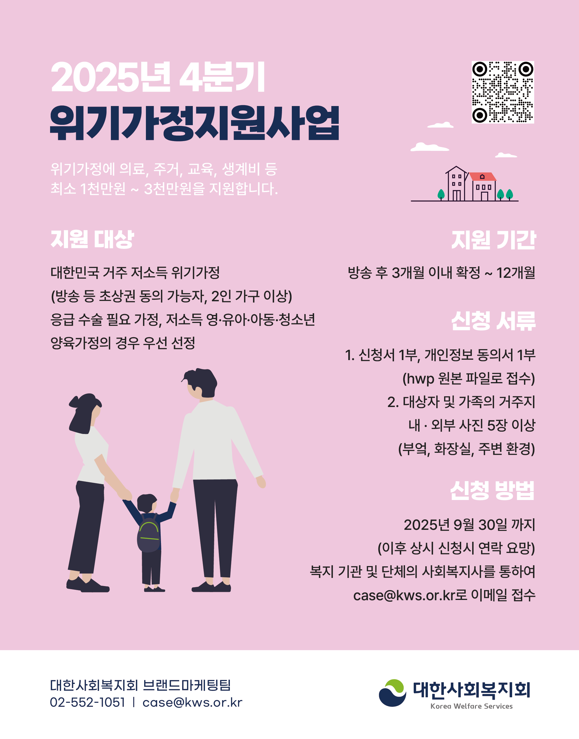 [모집] 2025년 4분기 위기가정지원사업 안내 (~9/30)