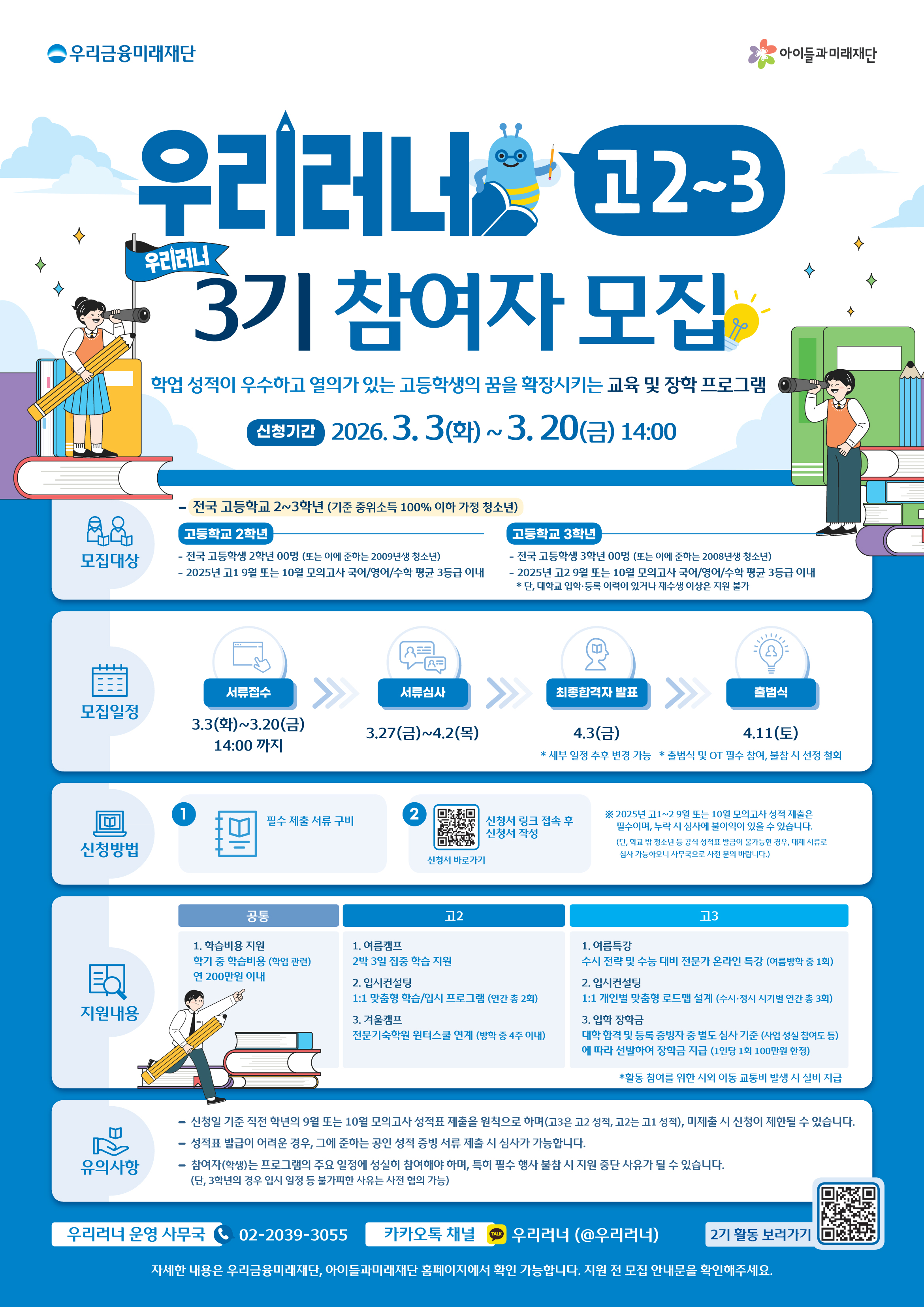 사회공헌공모 [우리금융미래재단] 우리러너 3기(고2, 고3) 참여자 모집 공고(~3/20)