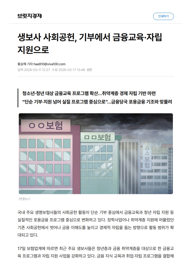 사회공헌기사 생보사 사회공헌, 기부에서 금융교육·자립 지원으로