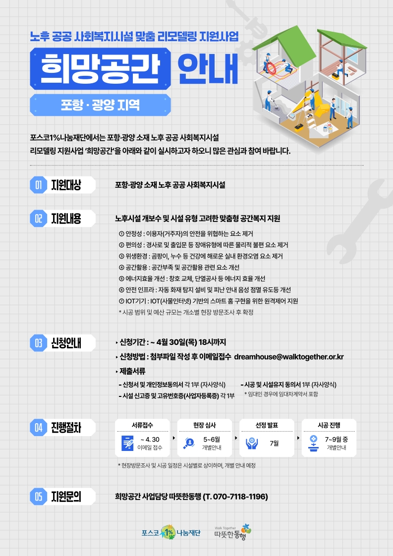 사회공헌공모 [따뜻한동행] 2026년 노후 공공사회복지시설 맞춤 리모델링 지원사업 희망공간 안내