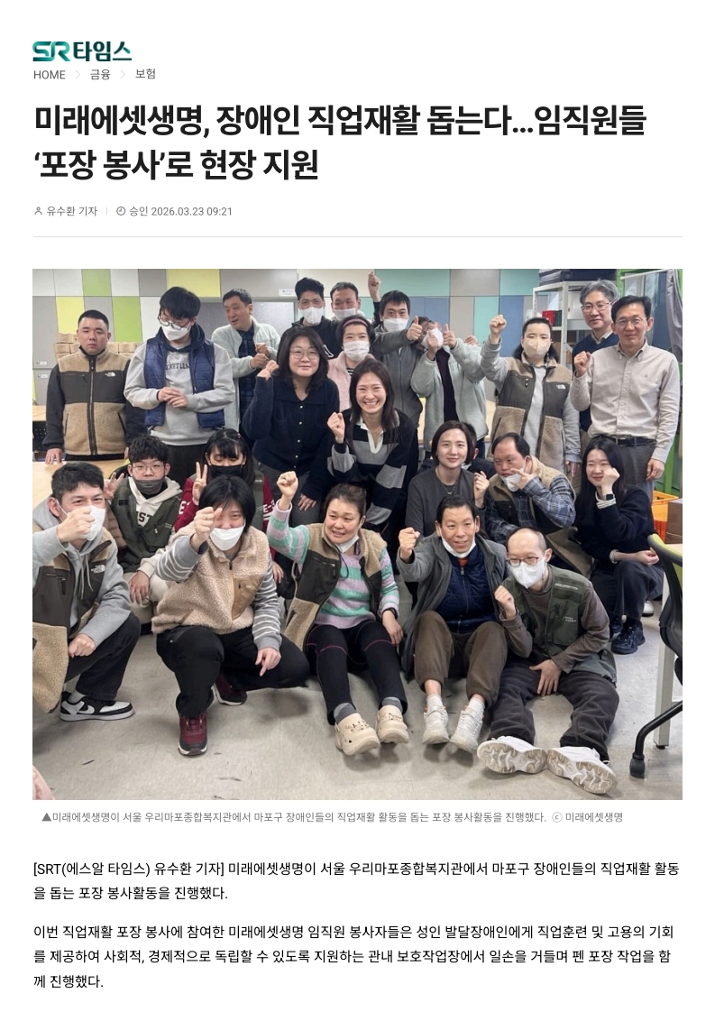 사회공헌기사 미래에셋생명, 장애인 직업재활 돕는다…임직원들 ‘포장 봉사’로 현장 지원