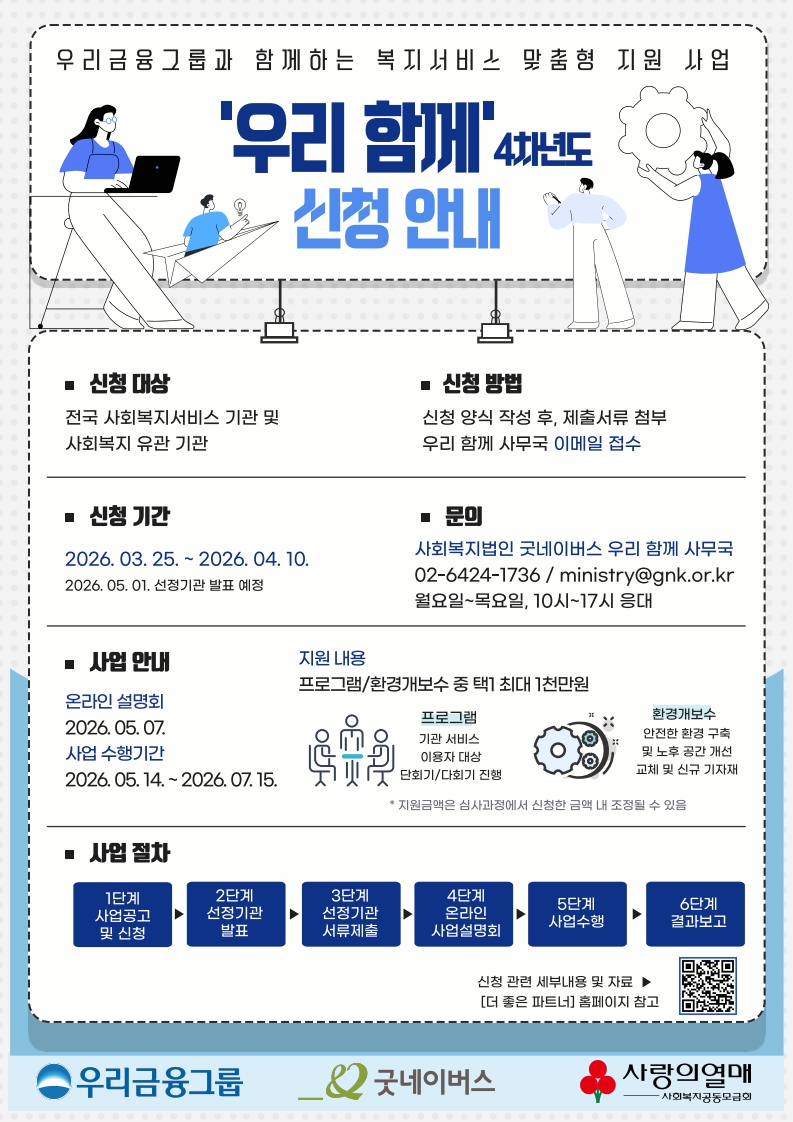사회공헌공모 [굿네이버스]우리금융그룹 복지서비스기관 맞춤형 지원사업 우리함께(4차년도) 상반기 모집 안내(~4/10)