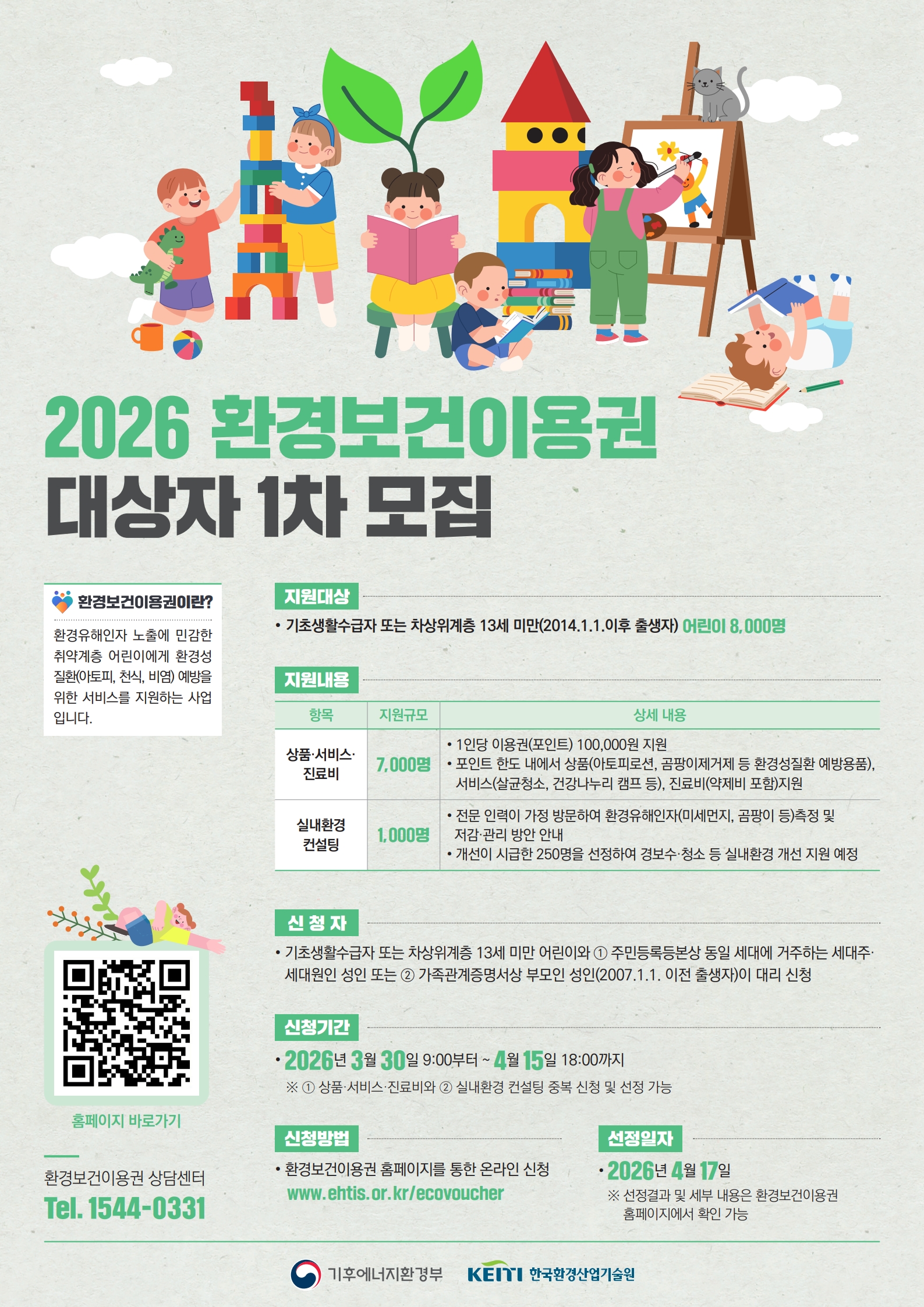 사회공헌공모 [한국환경산업기술원] 2026년 환경보건이용권 대상자 1차 모집 안내