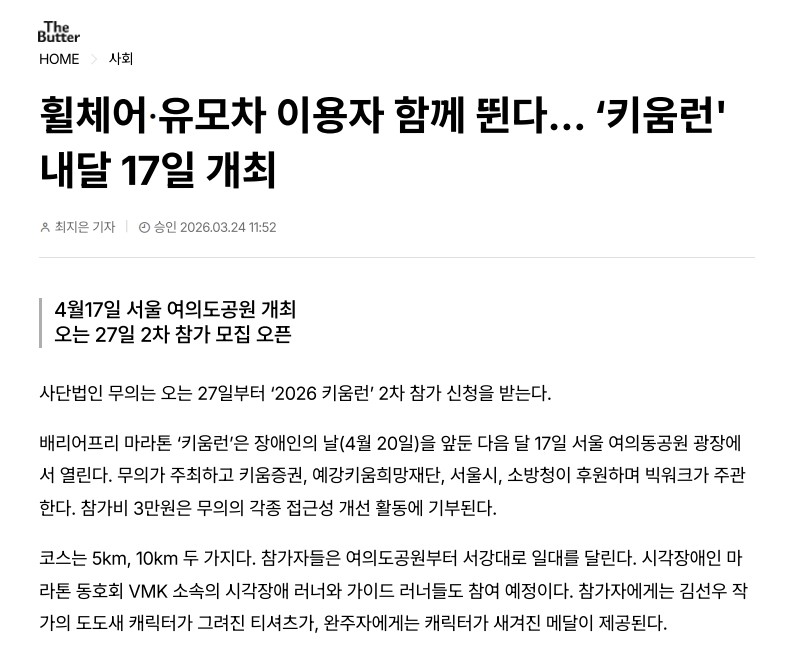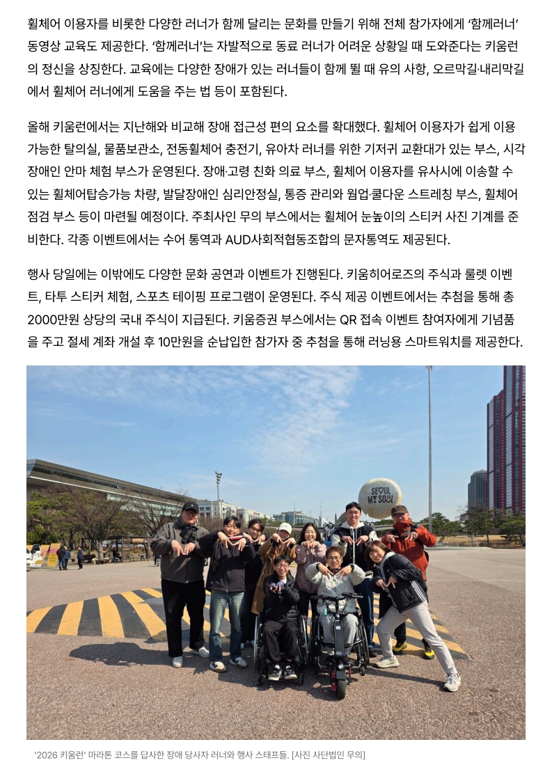 사회공헌기사 휠체어ᐧ유모차 이용자 함께 뛴다... ‘키움런' 내달 17일 개최