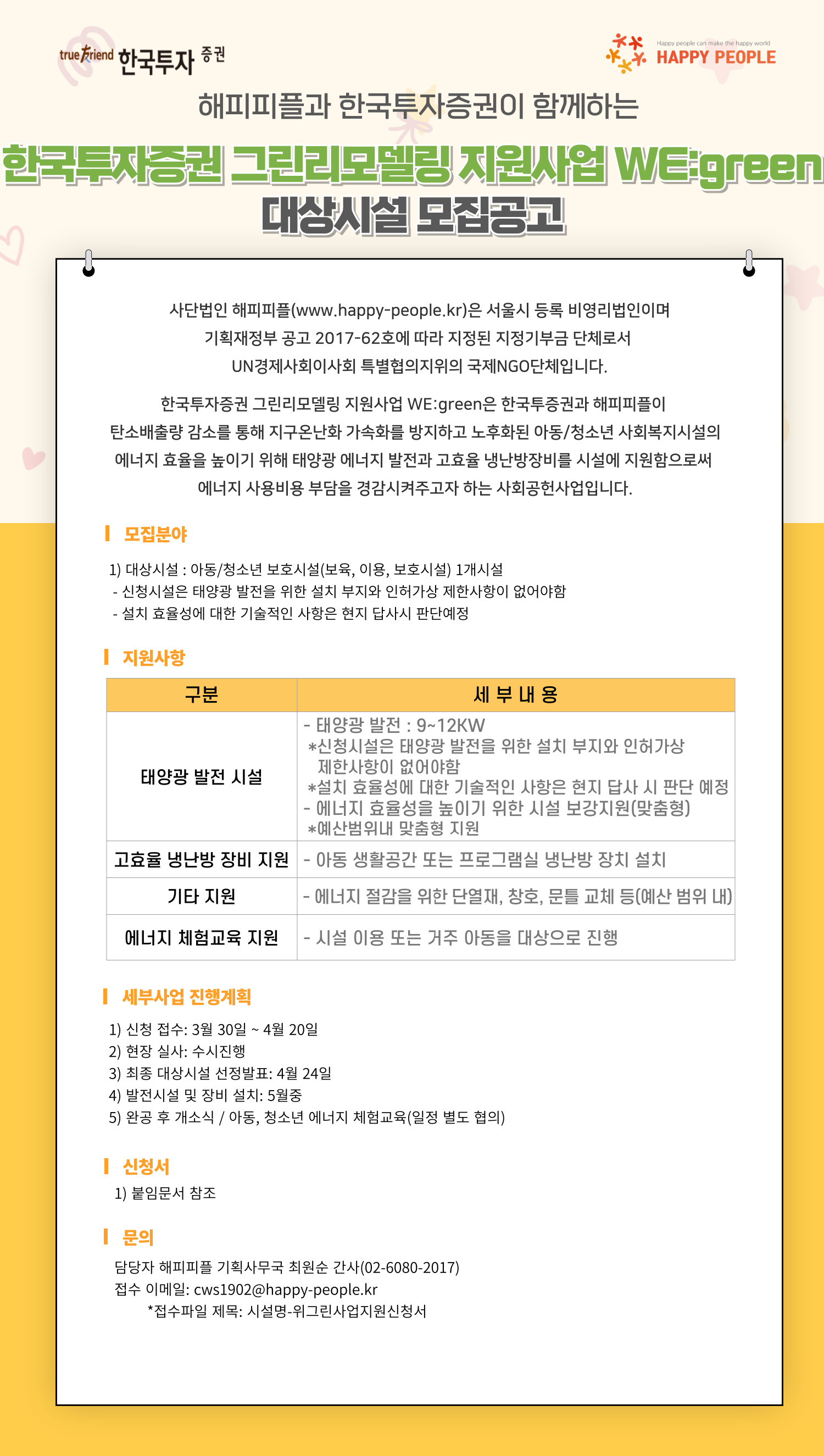 한 국 투 자 증 권 그린리모델링 지원사업 WE:green은 한국*증권과 해피피플이